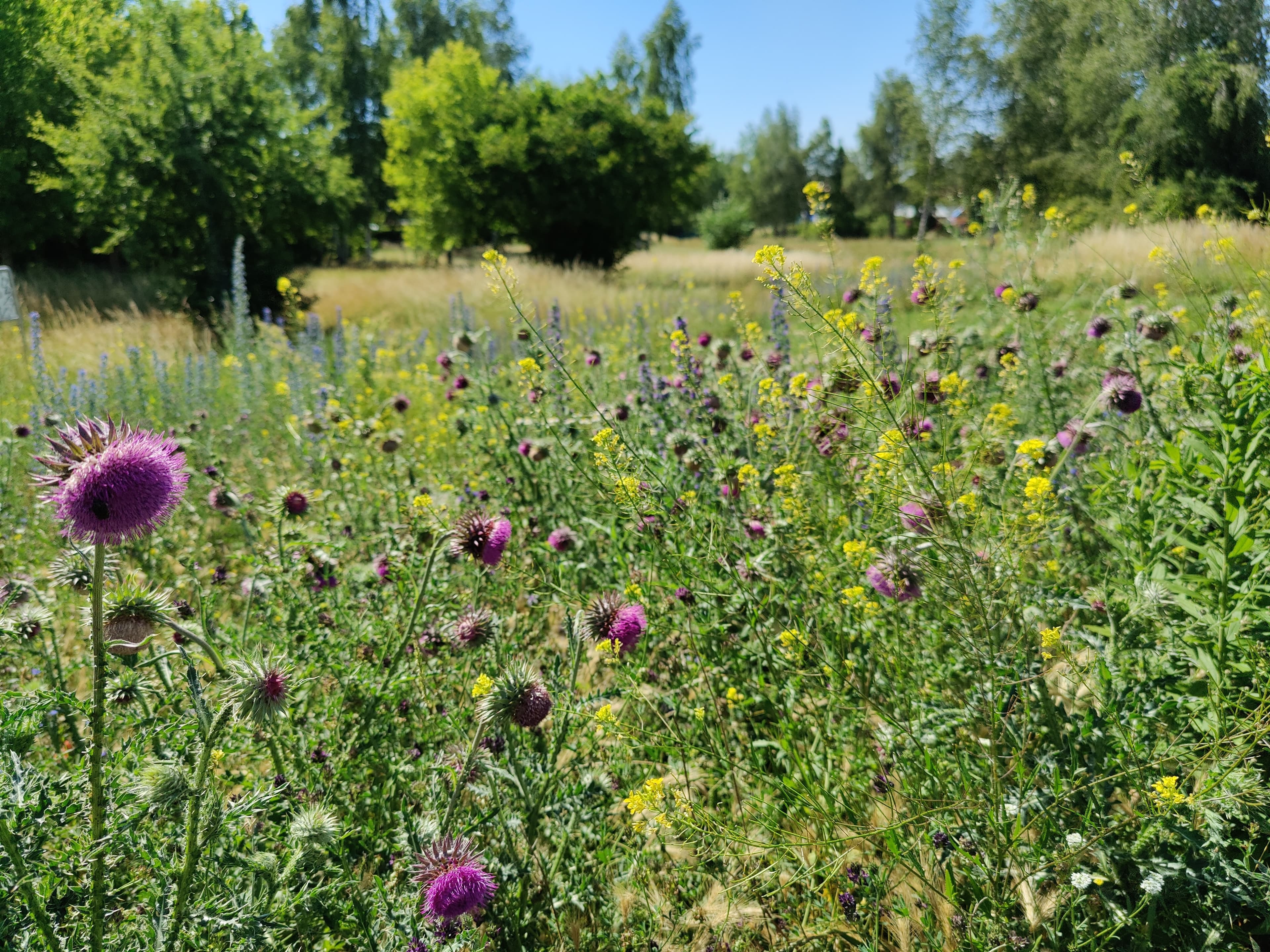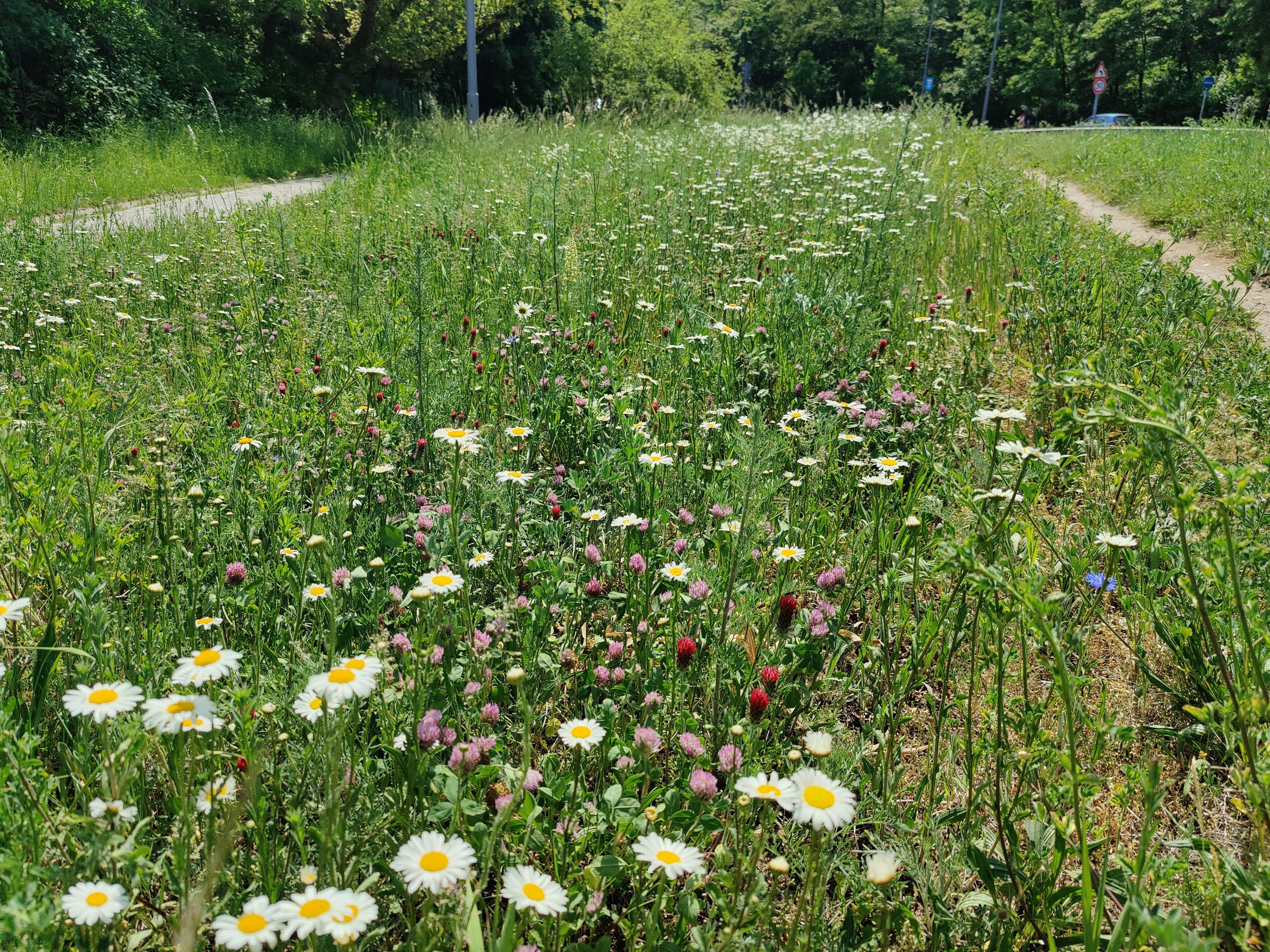 Natürlich läuft nicht immer alles ideal. Manchmal werden Flächen durch Baumaßnahmen beeinträchtigt, oder eine ungünstige Pflege, etwa zu häufiges Mähen, reduziert das Blütenangebot deutlich. Dann muss man nachbessern oder neu einsäen. Viele Schwierigkeiten hängen außerdem mit dem starken Nutzungsdruck auf die wenigen verfügbaren Flächen zusammen. Das gilt besonders in einer dicht bebauten Stadt wie Berlin: Grünflächen werden dort oft gleichzeitig als Aufenthalts- und Erholungsräume genutzt, als Veranstaltungsorte oder temporär als Lager- und Baustelleneinrichtungsflächen, was Vegetation und Boden stark beanspruchen kann. Auch intensives Betreten, Hundelauf, Müllbelastung oder das kurzfristige Umgestalten von Flächen im Zuge von Bau- und Infrastrukturmaßnahmen können die Entwicklung artenreicher Blühflächen erschweren.