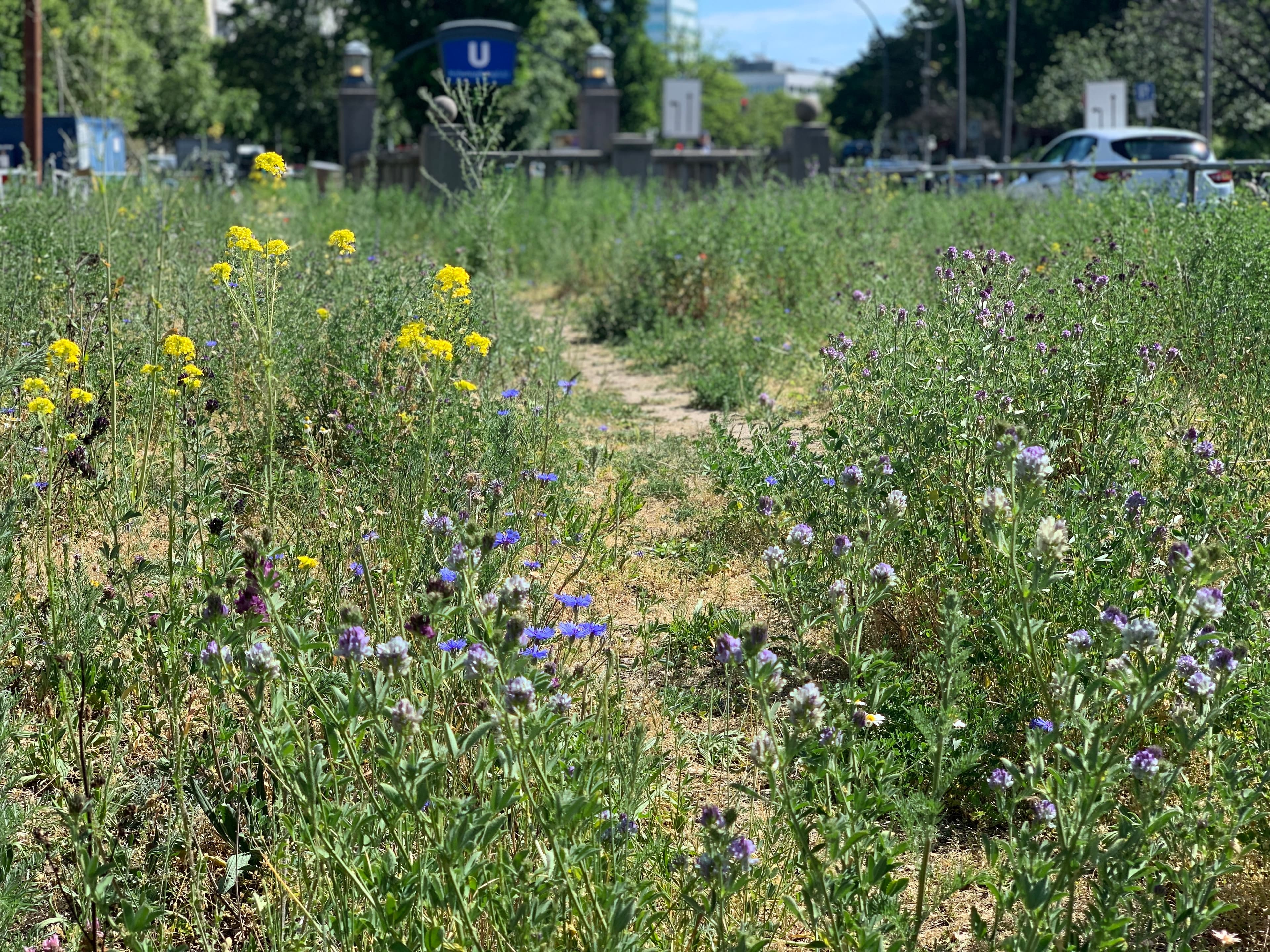 Natürlich läuft nicht immer alles ideal. Manchmal werden Flächen durch Baumaßnahmen beeinträchtigt, oder eine ungünstige Pflege, etwa zu häufiges Mähen, reduziert das Blütenangebot deutlich. Dann muss man nachbessern oder neu einsäen. Viele Schwierigkeiten hängen außerdem mit dem starken Nutzungsdruck auf die wenigen verfügbaren Flächen zusammen. Das gilt besonders in einer dicht bebauten Stadt wie Berlin: Grünflächen werden dort oft gleichzeitig als Aufenthalts- und Erholungsräume genutzt, als Veranstaltungsorte oder temporär als Lager- und Baustelleneinrichtungsflächen, was Vegetation und Boden stark beanspruchen kann. Auch intensives Betreten, Hundelauf, Müllbelastung oder das kurzfristige Umgestalten von Flächen im Zuge von Bau- und Infrastrukturmaßnahmen können die Entwicklung artenreicher Blühflächen erschweren.