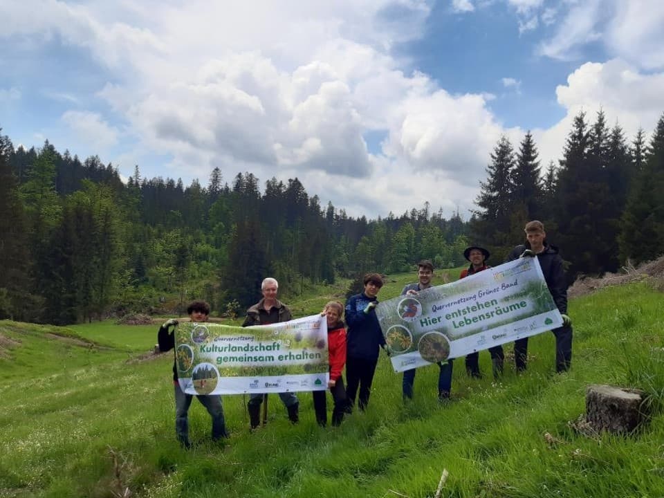 Das Grüne Band ist ein einzigartiger Verbund an naturnahen Lebensräumen, der sich entlang des ehemaligen Eisernen Vorhangs entwickelt hat. Es ist der einzige nationale und länderübergreifende Biotopverbund, Leuchtturmprojekt in der Nationalen Strategie zur Biologischen Vielfalt und im „Bundeskonzept Grüne Infrastruktur“ als Rückgrat der Grünen Infrastruktur in Deutschland explizit aufgeführt. Das Projekt „Quervernetzung Grünes Band“ schafft und verbessert Vernetzungen zwischen dem länderübergreifenden Biotopverbund Grünes Band und anderen regionalen, nationalen sowie europäischen Biotopverbundachsen. Das Projekt trägt nachhaltig zur Wiederherstellung von Ökosystemen bei, da verschiedene Maßnahmen zur Herstellung und qualitativen Aufwertung von Lebensräumen im Kontext des funktionalen Biotopverbunds umgesetzt werden und sich somit die Wirkung der Einzelmaßnahmen verstärken kann. Hierzu werden Verbindungsachsen und Trittstein-Biotope vom Grünen Band ausgehend ins Umland geschaffen: In fünf Vernetzungsgebieten, vom Norddeutschen Tiefland bis in den Bayerischen Wald, werden Renaturierungsmaßnahmen in unterschiedlichen Naturräumen und für eine Vielzahl an Lebensraumtypen (z.B. Feuchtgebiete, Moore, Bergwiesen/-weiden) durchgeführt. Zudem werden biotopersteinrichtende Maßnahmen für gefährdete Zielarten wie Kiebitz, Waldbirkenmaus, Fadenmolch und Arnika umgesetzt und innovative Kooperationen mit Landwirtinnen und Landwirten für die Entwicklung von Biotopverbundelementen etabliert.