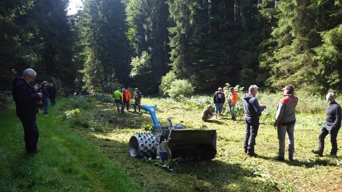 - Wiedervernässung und Reaktivierung von Feucht- und Moorbereichen inkl. der Etablierung wertgebender Arten wie Fieberklee, Sumpfblutauge und Krausem Kreiskraut sowie Reaktivierung von historischen Wiesenwässergräben (750 m) zum Erhalt artenreichen Feuchtgrünlands im VG Innerer Bayerischer Wald.