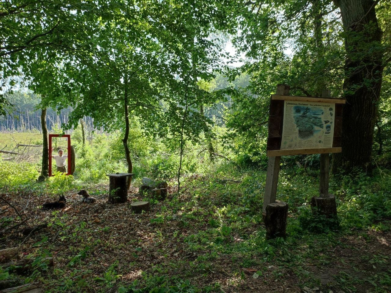 + Die innerhalb des NSG befindlichen Waldmoore werden mit freiwilligen Arbeitseinsätzen jährlich in Teilbereichen entkusselt mit dem Ziel, die streng geschützte Hochmoorlebensgemeinschaft zu erhalten, u.a. Sonnentau, Sumpfporst, Moosbeere u.a.